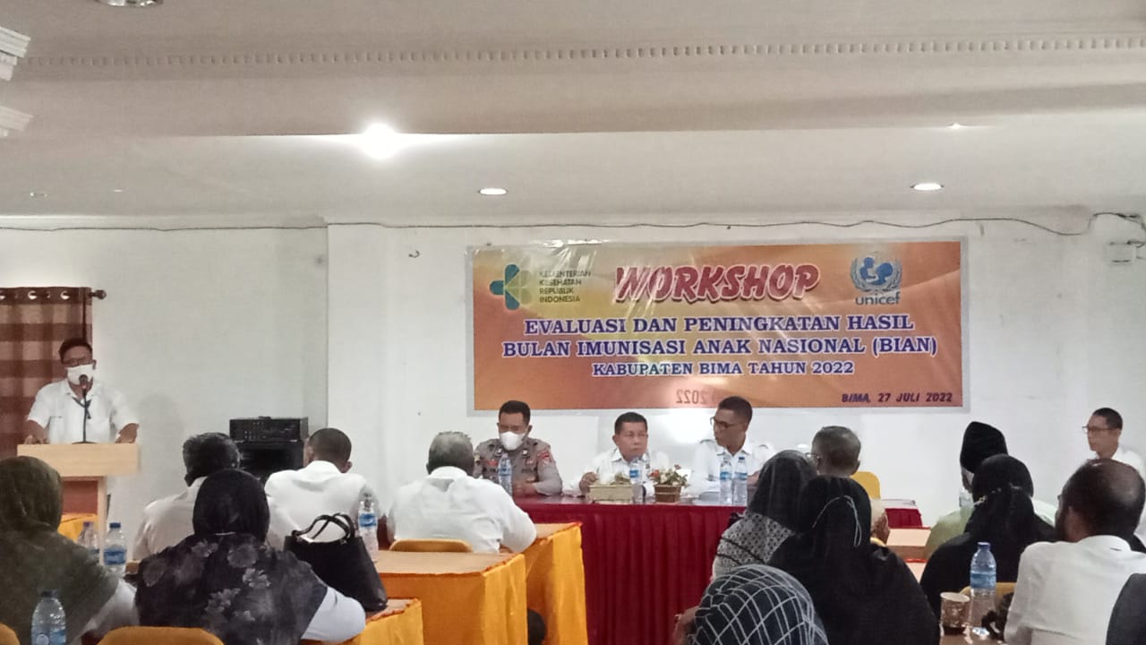 Bima, TABACA.- Dalam rangka mensukseskan Bulan Imunisasi Anak Nasional (BIAN) di Kabupaten Bima, Kepolisian Resor Bima Polda NTB, lewat Ps Kasidokes, Iptu M. Hilir, SH, ikut menghadiri giat Pembukaan sekaligus pelaksanaan Workshop Evaluasi dan Peningkatan Hasil BIAN Kabupaten Bima Tahun 2022, Rabu (27/7/22) yang dimulai Pukul 09.30 Wita pagi tadi.